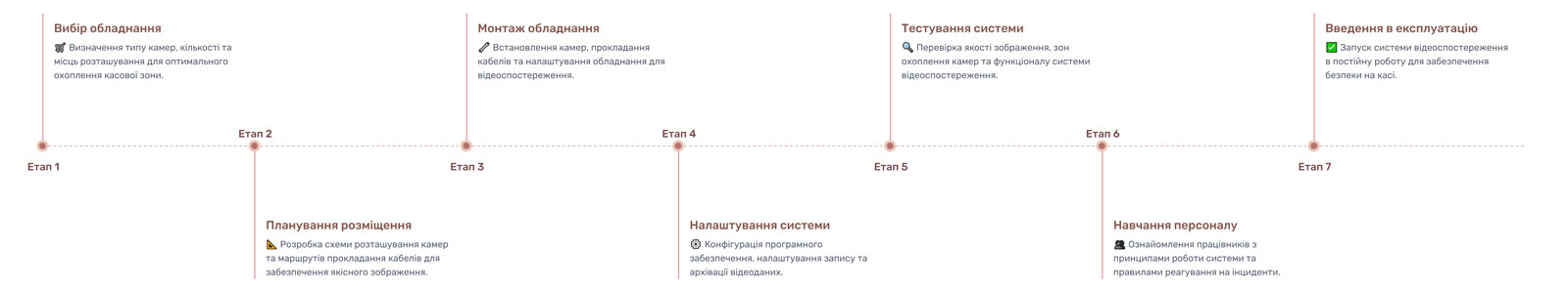 Дотримання цих етапів допоможе забезпечити ефективну і надійну систему відеоспостереження на касі, яка сприятиме захисту як фінансових активів, так і співробітників.